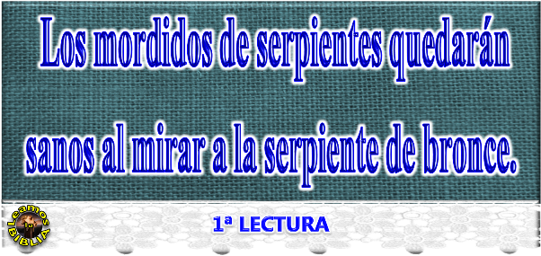 Entonces el pueblo acudió a Moisés, diciendo: «Hemos pecado hablando contra el Señor y contra ti; reza al Señor para que aparte de nosotros las serpientes». Moisés rezó al Señor por el pueblo y el Señor le respondió: «Haz una serpiente abrasadora y colócala en un estandarte: los mordidos de serpientes quedarán sanos al mirarla».